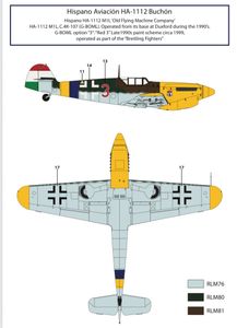 These are 1/24 scale decals for the Old Flying Machine Company's Buchon, G-BOML
